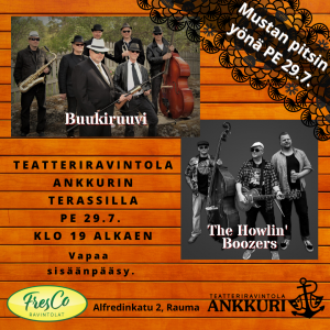 Mustan pitsin yön kunniaksi paikalla Buukiruuvi ja The Howlin’ Boozers.